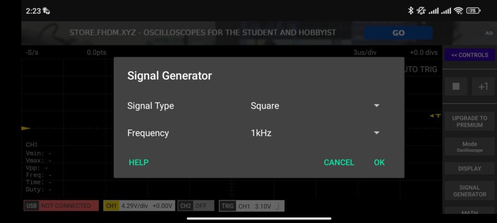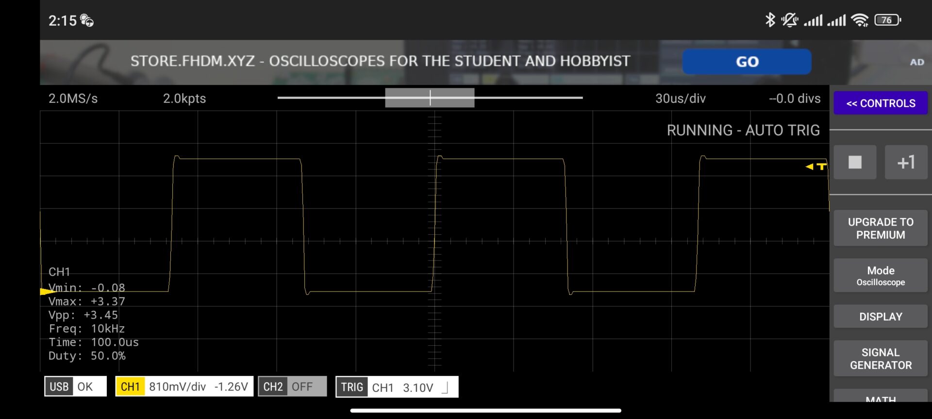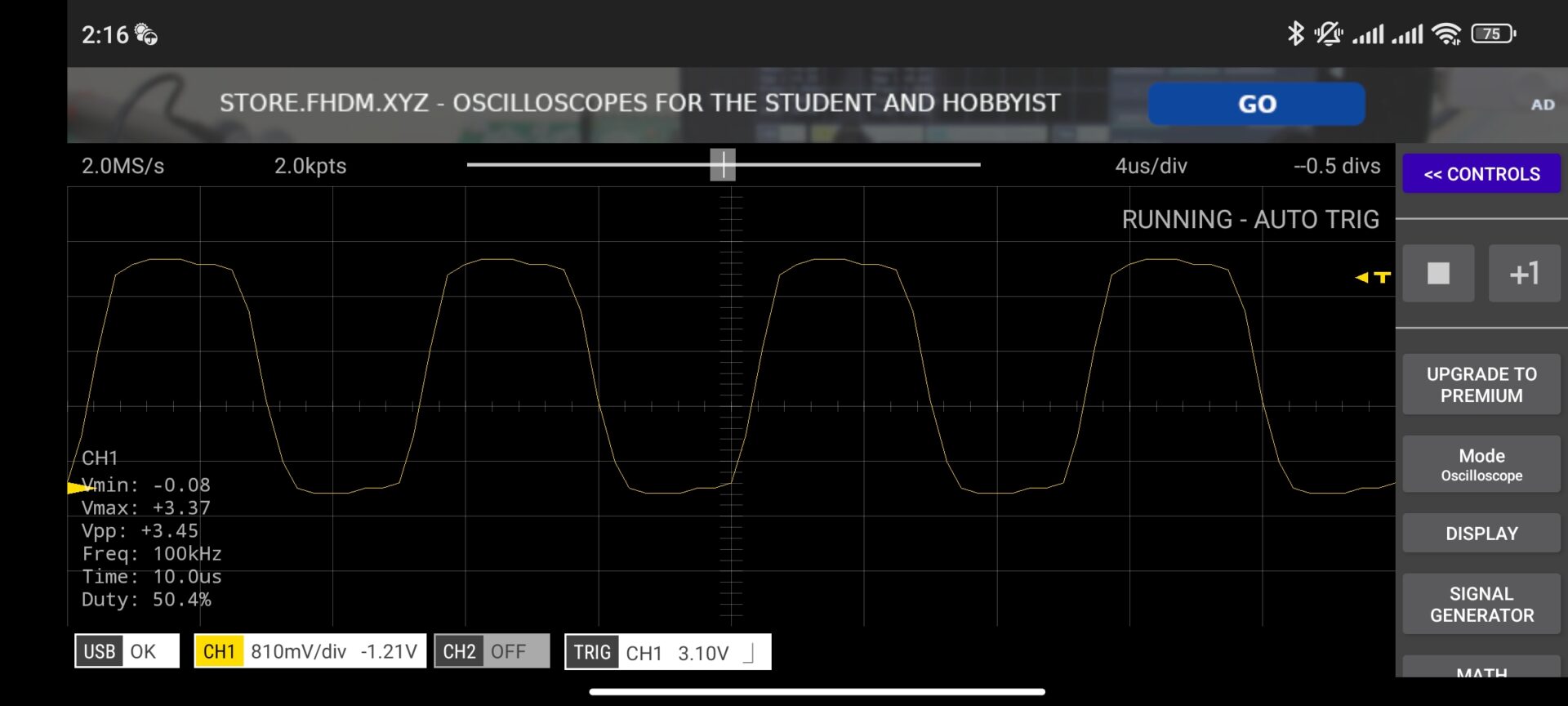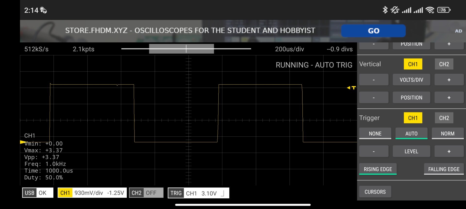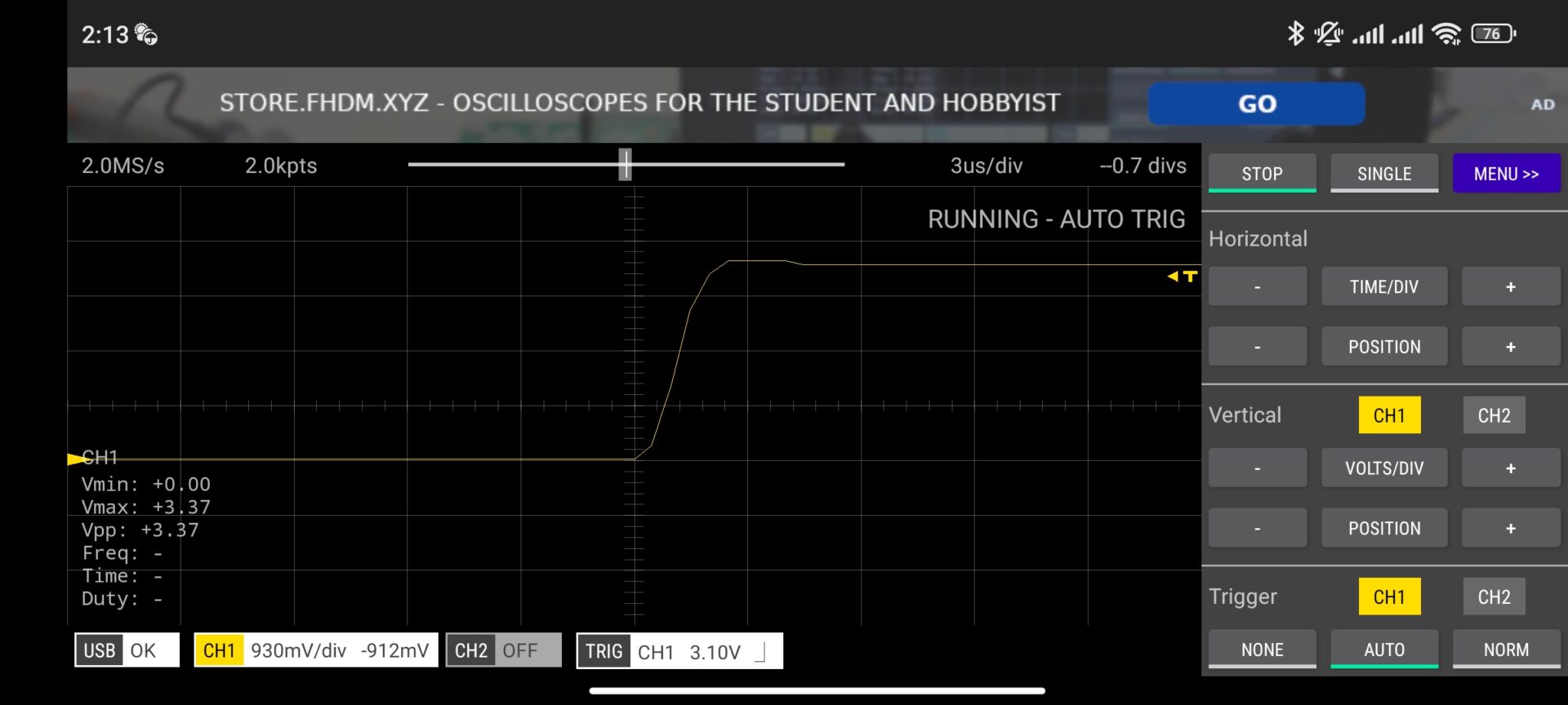 Raspberry Pi PicoのADC入力を利用したオシロスコープ。ラズパイとAndroidとOTGケーブルで接続後、スマホアプリで使用できます。